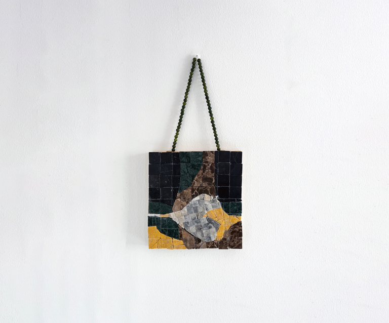 Logical Spirituality, 2025, Marble mosaic on wood, Agate beads 25 x 20 cm (without beads)Hanging Like Frozen Spears of Light, 2024, Marble and Lapis Lazuli mosaic, Aventurine beads, 142x57x2cmCrystallised Threads of Dusk, 2024, Lapis Lazuli and marble mosaic with Yellow Topaz, Citrine, Prehnite and Rhodonite Beads, 120 x 46 x 2 cmBetter at Singing, 2024, Marble mosaic on wood, 20 x 32 x 1 cmCherry Blossoms Smell Like Honey , 2024, Marble and Lapis Lazuli mosaic on wood, 62x75x2cmNaughty Burner, 2024, Marble mosaic on Wood, 52x34x1cmShe is an Angel, will be a Flower, 2023 Marble, Lapis Lazuli and Pink Opal mosaic on wood 115 x 120cmHeavy as Wind, 2024, Marble mosaic on wood, 47x50x2cmLet it Slide, 2024, Marble mosaic on wood, 47x26cmGoing Feral , 2024, Marble mosaic on wood, 60x19x2cmRoyal Softie, 2024, Marble mosaic on wood, 40x25cmSeventh from the East, 2024, Marble and Lapis Lazuli mosaic on wood, 28x33cmPointy Hero, 2024, Marble mosaic on wood, 42x29cmSpotty Feather Light, 2024, Marble mosaic on wood, 31x24cmGossipist, 2024, Marble mosaic on wood, 24x25cmSeashell Galore, 2024, Marble mosaic on wood 33 x 16 x 2.5 cmππππ€ππππ πΎπππ π£π, 2023, Marble and lapis lazuli on wood 40x16x2,5cmLeaning Against the Winds, 2023 Marble and Pink Opal mosaic on wood, leather ribbons 214 x 95 x 3cmThe Beautifullest, 2023 Marble mosaic on wood, denim ribbons, 214:95cmMother and the Sea, 2023 Natural stone mosaic, (Marble, Travertine, Onyx) on plywood with printed back. Knitted collar and flowers, 60 x 31 cmRoses in My Blood, 2023 Marble, Onyx and Travertine Mosaic on plywood with printed back, 110 (H) x 40(W) x 0,5(D) cmMy Heart as Melting Waters, 2023 Marble, Travertine, Granite, Lazurite mosaic on wood, 115:120cmBlowing the Hottest Winds, 2022 Natural stones (Marble, Travertine) mosaic on wood 55x68 cmProfessionally Hot, 2022 Marble, Travertine mosaic on wood 110 (H) x 40(W) x 0,5(D) cmMy Heart as dark Green Forests, 2023 Marble, Travertine mosaic on wood 110 (H) x 40(W) x 0,5(D) cmMy Heart as Burning Lilly, 2023 Onyx, Marble, Travertine mosaic on wood, 214:95cmMy Heart as Snowy Mountains, 2023 Marble, Travertine mosaic on wood 110 (H) x 40(W) x 0,5(D) cmI chew my solid blood, 2022 Natural stones (Marble, Granite, Onyx) mosaic on plywood, beer bottle glass with Topaz, Agate and Prehnite beads. 43 (H) x 29(W) x 1 (D)cm (without beads)FIRST TO COME, LAST TO LEAVE , 2022 Lazurite, yellow Travertine, Marble Carrara and Negro Mosaic on wood 28x48cmLIQUID, BUT SOUR, 2022 ONYX AND TRAVERTINE MOSAIC, DRIED PEPPER BEAD, CRYSTAL TEAR 40X59X1CMMY GRANDPA BRINGS SMALL TURTLES AND WILD FLOWERS FROM THE MOUNTAINS, 2022 Forest Green, Carrara, Roso and Negro Marble mosaic 30CM Diameter, 4 CM DepthSun donβt burn, 2021 Red and Yellow Travertine mosaic on wood 50x50 cmTHEY BROUGHT BLUE BUTTERFLIES AND RELEASED THEM IN THE FIRE TO DANCE, 2022 Rose, Negro and Emperador Marble, red and Yellow Travertine, Onyx, lazurite mosaic on wood 65 x 75 x 1 cmRISING FROM THE ASHES AFTER FIRES,2022 Marble, Travertine, Onyx mosaic, silver chain, Pastel and pencils on burnt wood plate 35 x 48 x 1,5 cmNever suffer for free, 2022 Marble and Granite mosaic on wood, metal hanger on the back 43x29cmSuperstar with Heart, 2021 Marble and Travertine mosaic on wood, metal hanger on the back 20x24cmFlying Nowhere, 2021 Natural stones (Marble, Lazurite, Travertine) mosaic on wood 25x30 cmSuperstar with Stone, 2021 Marble and Travertine on wood, metal hanger on the back 20x30cmFlying Nowhere, 2021 Marble and Travertine mosaic on wood, metal hanger on the back, 25x30cmFlying East, 2023 Marble mosaic on wood 34 x 34 x 2 cmFlying East, 2023 Marble and Lapis Lazuli Mosaic on wood, 25 x 30 x 2 cmFlying East, 2023 Marble mosaic on wood 25 x 30 x 2 cmFlying West, 2023 Marble Mosaic on wood 25 x 30 x 2 cmI Recycle my tears, 2020 Marble, Onyx, Travertine, Diabase and Granite mosaics in brass frames, 30cm diameter each.The Bird of Reborn, 2020 Marble, Granite, Travertine 110x75cmCastle in the ocean, 2019 Glass mosaic on wood 40x40cmFire Behind Hills, 2019 Glass mosaic on wood 25x30cmHanging on the top, 2019 Marble, Travertine, Onyx, Granite, Basalt, Tuff mosaic on wood 90x90cmAnd Waters Part, 2019 Marble, Travertine, Onyx, Granite, Basalt, Tuff mosaic on wood 80x90cm